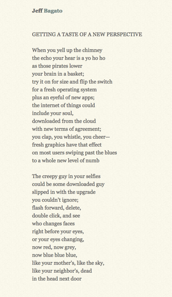 A bilingual literary journal (texts in French or English) with outsider leanings, Datura just released its 12th issue today featuring poetry, rants, a book review, and interesting collages by Claudio Parentela. In France it’s available in print, online for rest of the world. The issue also includes two of my poems: “Milking an Elephant for Toothpaste in the Jungle” and “Sucking Soap on a Rope.” You can read them here.