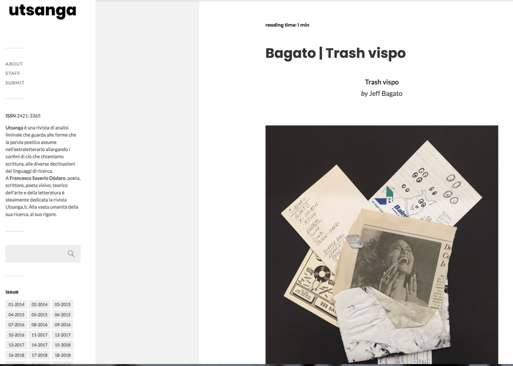 I’m pleased to be represented in the mix with ten pieces of asemic visuals created last summer using a stash of junk I found on the street over the previous couple decades. You can check them out here.