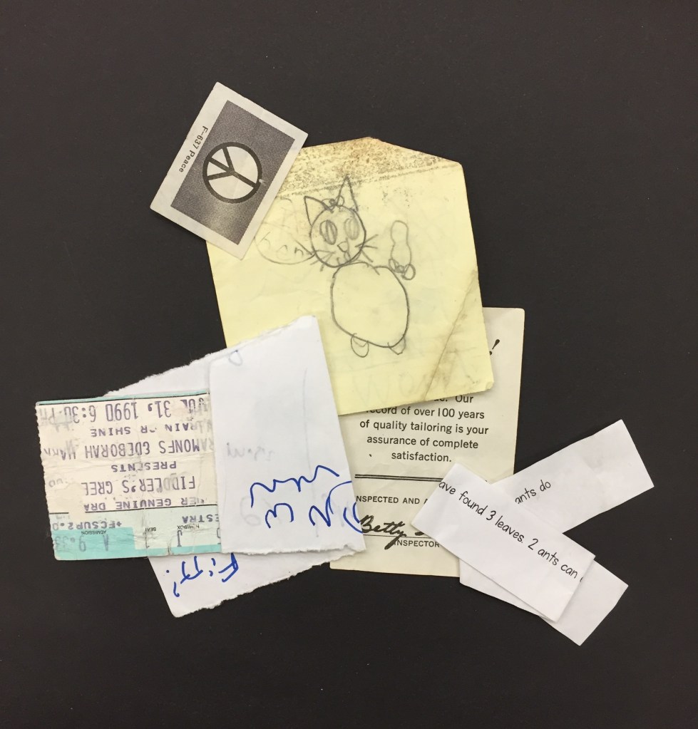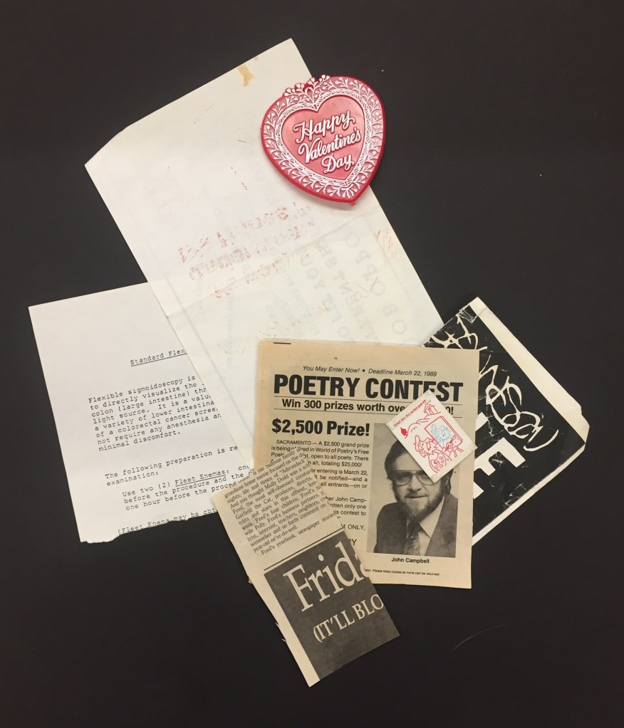 To my regret, these works exist only in the form of digital photographs. Once they were composed, everything went into the trash. One could argue that’s where these “poems” and the junk in them belong. Fine. But I do regret I didn’t glue some of these down and keep them for my archive. At the time, I was packing for a cross country hell move, and needed to unload as much stuff as possible. And there was a swift, improvisational process involved: composing, photographing, clearing them away. At the time, the impermanence of the work seemed important.