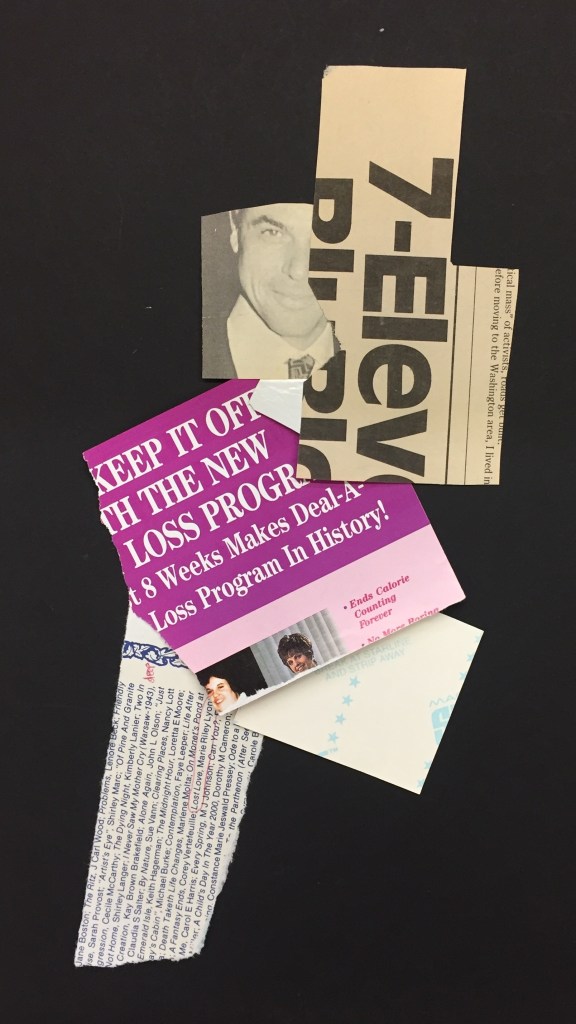 A series of visual poems created in Summer 2020. Most of these pieces were published in various issues of Artedolia, Synapse, Otoliths, and Utsanga. The source material? Well, since the 90s, my friend David Craig has sent me the stuff he’s found–and actually picked up–on the street (and other locations) in Herndon, VA, and Portland, OR. Maybe some other places. More or less, each piece is drawn from the contents of a single envelope. There were lots of envelopes, and I still have lots of them that remain untapped.