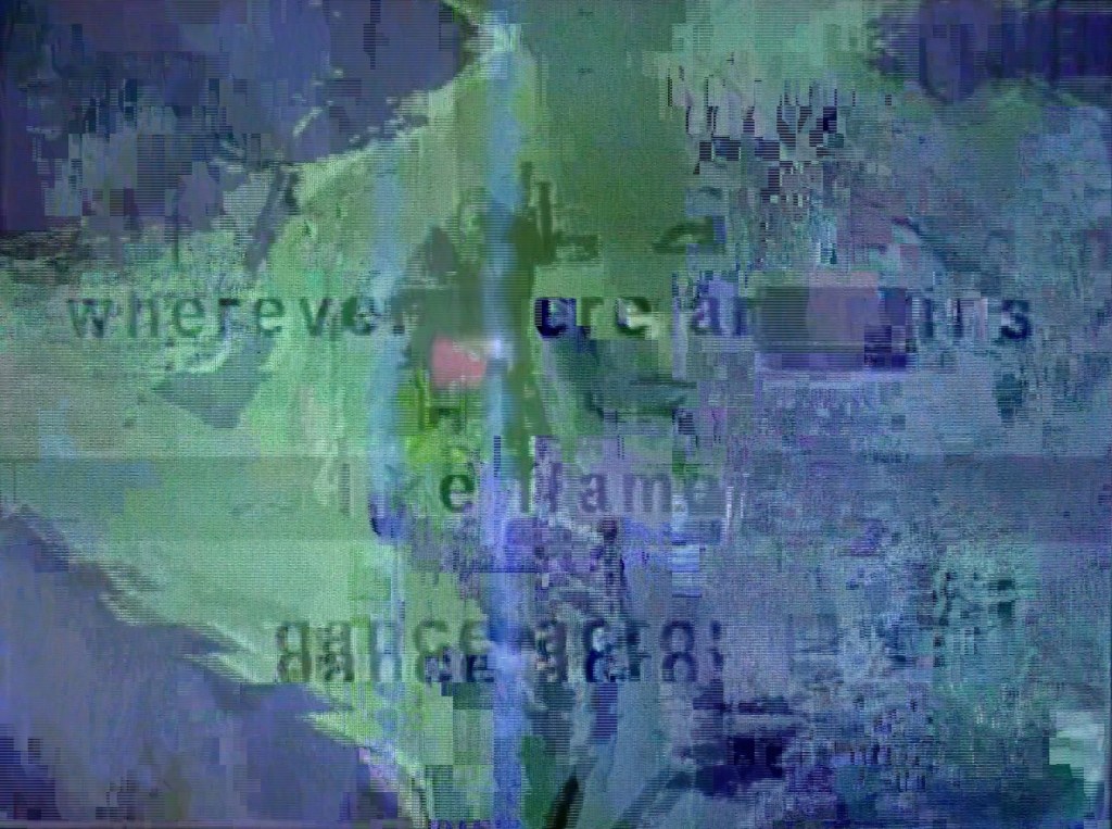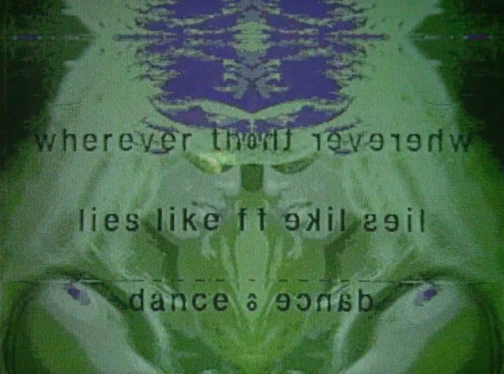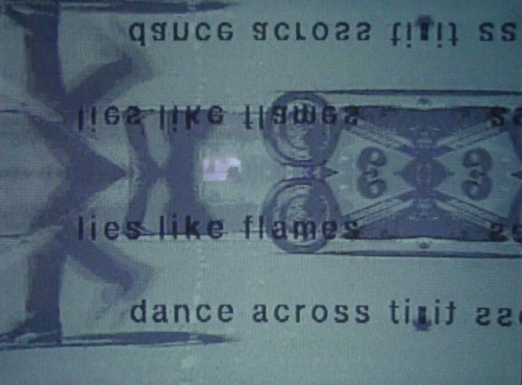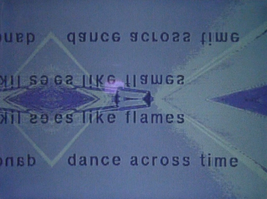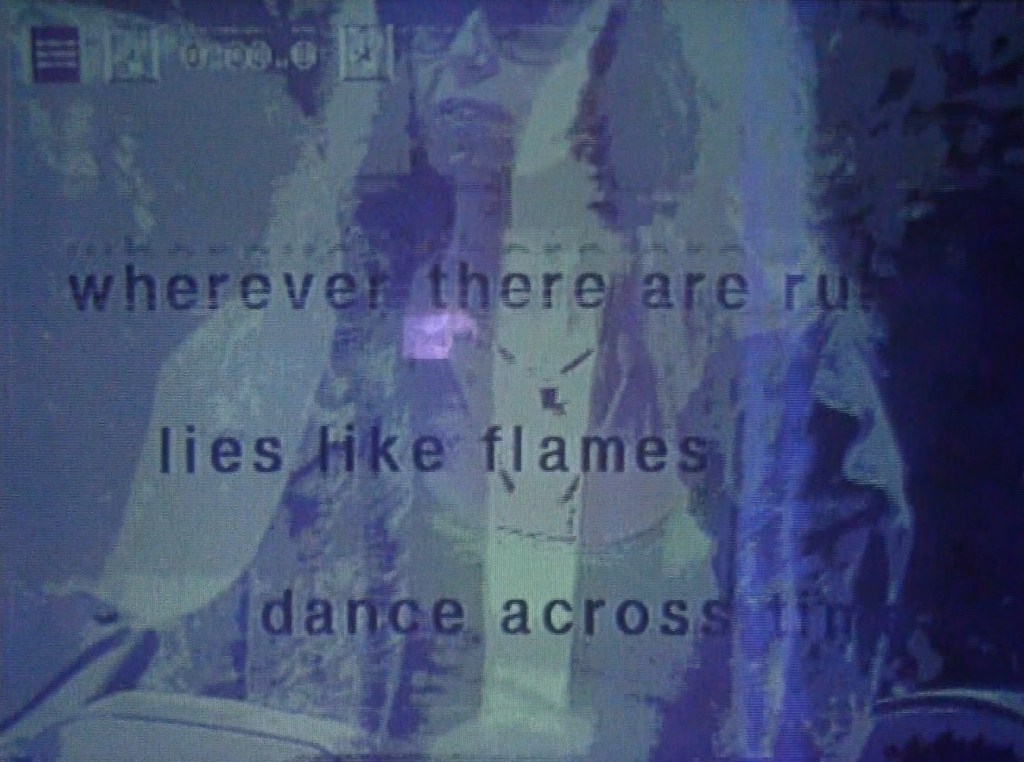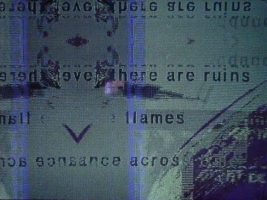 Still shots from the “Succubus Highway” music video (view on YouTube here), presented as visual poetry with asemic elements. Video: Bionic Eyes; Music: Tone Ghosting. Video text reads: “Wherever there are ruins/lies like flames/dance across time.”